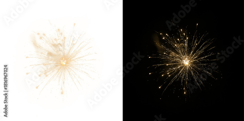 © ellyson, Fototapeta premium Champagne gold sparkles firework PNG. Magic glitter burst.