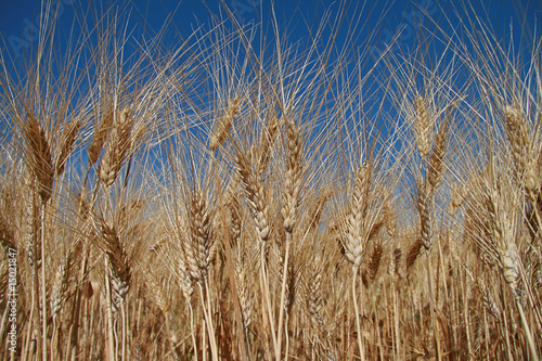 © M.studio, Fototapeta premium champs de blé, epis sur fond ciel bleu