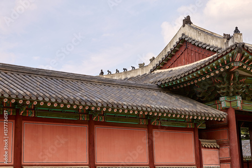 © JUNSEOK, Fototapeta premium Changdeokgung Palace and Secret Garden (Huwon), UNESCO Heritage Site, Seoul, Korea, Geunjeongjeon Hall in Gyeongbokgung Palace, South Korea, 한국 서울 경복궁 근정전 정면 사진 서울 창덕궁 인정전과 후원 (비원) 유네스코 세계문화유산