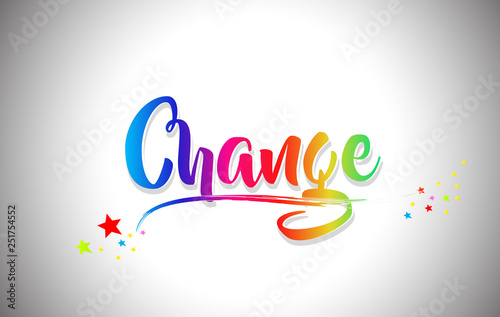 Obraz premium Change Handwritten Word Text with Rainbow Colors and Vibrant Swoosh.