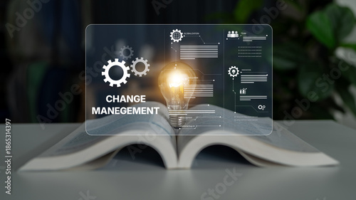 Fototapeta premium Change management strategy combining innovation, globalization, and teamwork to enable business transformation and emotional engagement in modern organizations Latch