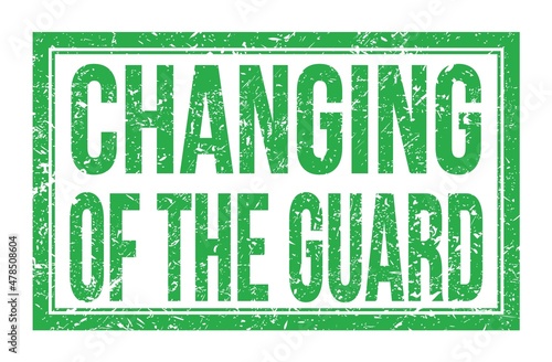 Fototapeta premium CHANGING OF THE GUARD, words on green rectangle stamp sign