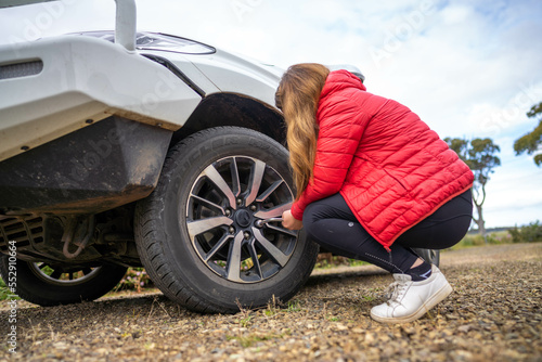 © Phoebe, Fototapeta premium chaning a tyre on a ute and car