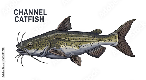 © godsfavoritearts, Fototapeta premium Channel Catfish Fish Isolated on White.