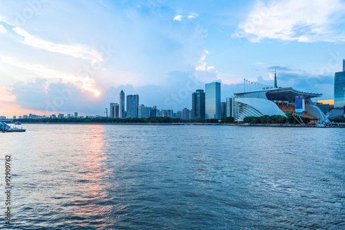 © zhu difeng, Obraz premium channel with skyscrapers aside