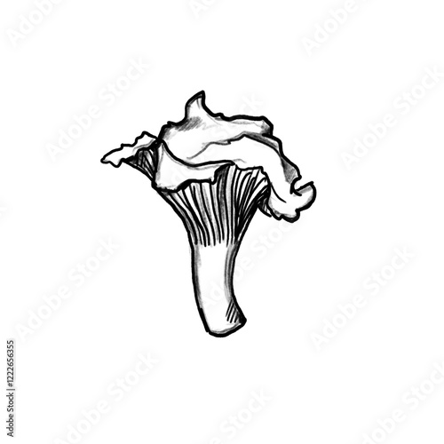 © Peer, Fototapeta premium Chanterelle mushroom, Vegetable, kitchen, cooking, dish, delicious, recipe, menu, food, healthy, fit, hand-drawn pencil drawing, illustration, black, transparent background, PNG