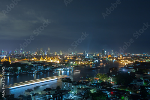 Obraz premium Chao Phraya River, Bangkok at night, overlooking the Grand Palace.