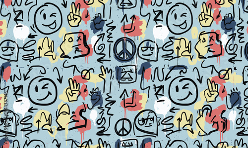 © Pixel Pulse, Fototapeta premium Chaotic Doodle Scribble Street Art Seamless Pattern Vector