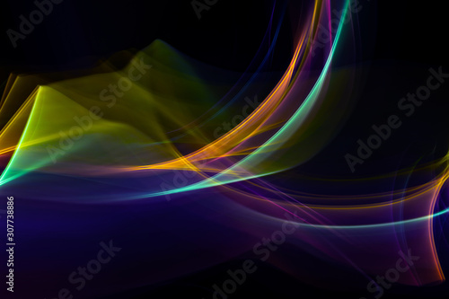© Иван Копышев, Naklejka premium Chaotic movement of different bands on a black background