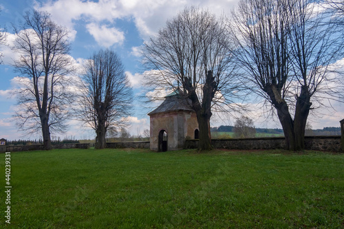 Fototapeta premium Chapel at the Church of St. John of Nepomuk in the small village of Staré Křečany in the Czech Republic.