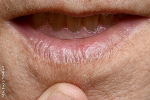 © ZAY WIN HTAI, Obraz premium Chapped lips called cheilitis in Asian elder woman.