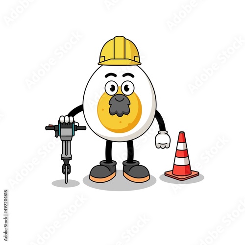 © Ummu, Obraz premium Character cartoon of boiled egg working on road construction