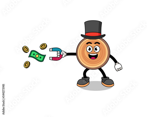 Fototapeta premium Character Illustration of wood grain catching money with a magnet