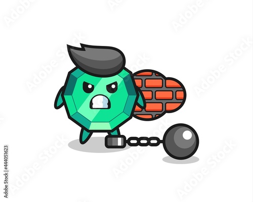 Obraz premium Character mascot of emerald gemstone as a prisoner