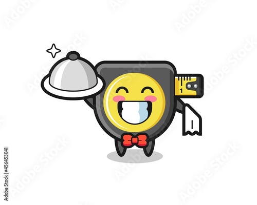 © heriyusuf, Obraz premium Character mascot of tape measure as a waiters