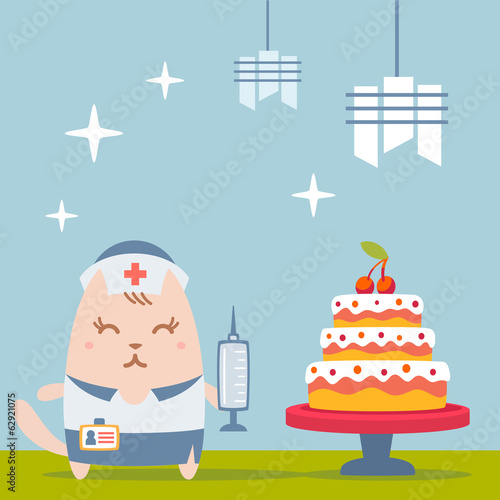 © wowomnom, Naklejka premium Character nurse in uniform with a medical cap colorful flat