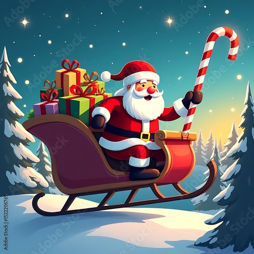 Obraz premium Character Riding Sleigh with Presents in Winter Scene