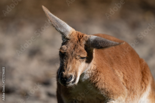 Naklejka premium Characterful Red Kangaroo Portrait with a Floppy Ear