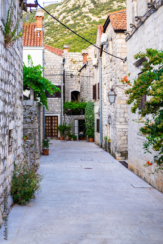 Fototapeta premium Characteristic street with stone houses, picturesque small old town Mali Ston, Dalmatia, Croatia
