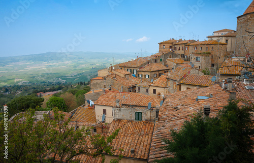 Obraz premium Characteristic terracotta rooftops and outlook over rural Italian landscape