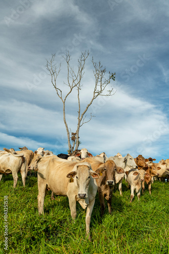 © Amaiquez, Obraz premium Charbray cattle farm in Chiriqui, The Australian Charbray is an Australian breed of cattle derived from a cross between French Charolais cattle and American Brahman cattle. Panama - stock photo