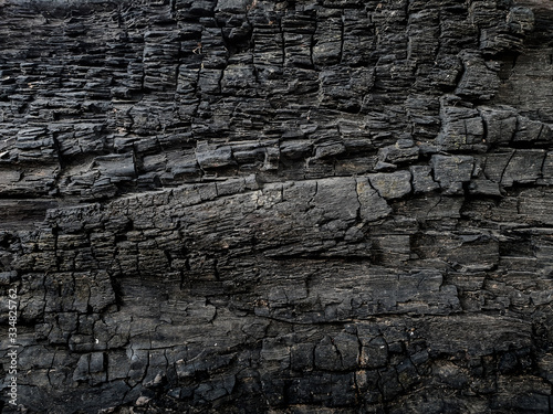 © Nitiphonphat, Obraz premium Charcoal crayon Carbon black background . A large plank of wood burned texture .