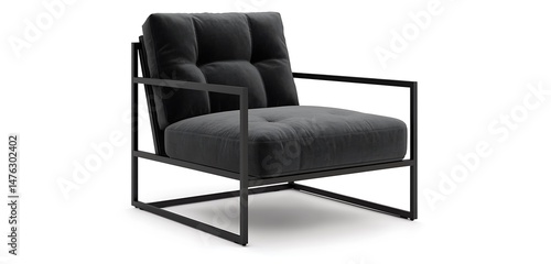 © Shahzada jahangir, Fototapeta premium Charcoal gray reading chair with minimalist straight lines and bold presence