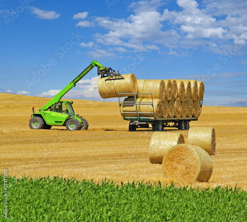 © lamax, Naklejka premium Chargement de rouleaux de paille