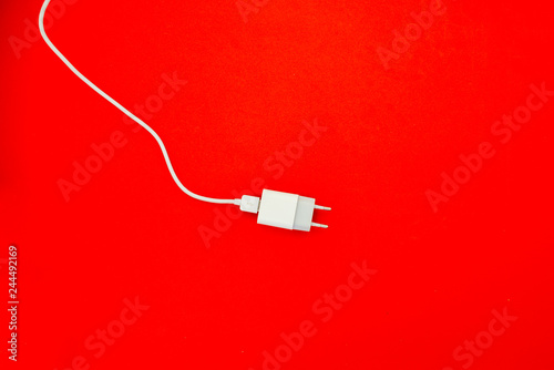 © Elina, Fototapeta premium Charger through USB Cable on Turquoise Background Top View