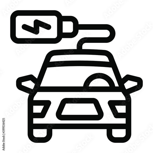 Obraz premium Charging car connected with cable, solid icon