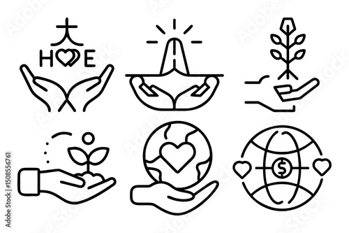 © Narayon, Fototapeta premium Charity icon set line art vector illustration