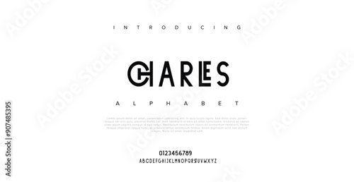 Fototapeta premium Charles Abstract minimal shape alphabet fonts. Minimalist typography vintage...
