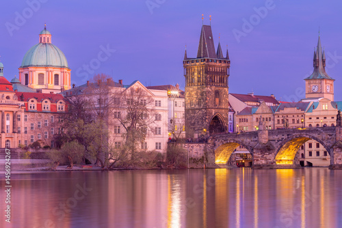 Naklejka premium Charles Bridge at Dusk in Prague Czech Republic