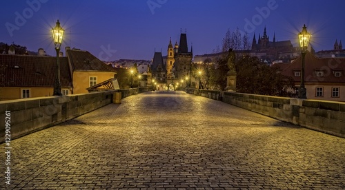 © Karl-Heinz Spremberg/imageBROKER, Naklejka premium Charles Bridge at night, Prague, Czech Republic, Europe