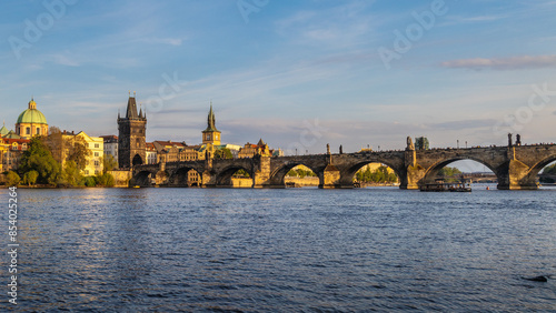 Fototapeta premium Charles Bridge in Prague in beautiful light at sunset, Czech Republic, Europe.