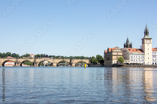 Fototapeta premium Charles bridge prague sunny panorama czech republic