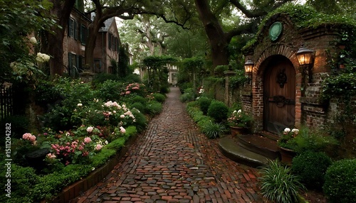 © Rupa, Fototapeta premium Charleston Alley Garden Pathway.