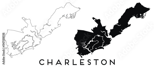 Obraz premium Charleston County, South Carolina map outline and black silhouette vector
