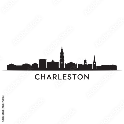 Obraz premium Charleston skyline horizontal banner. Black Charleston City, South Carolina. Vector template for your design. Vector black silhouette. with white background