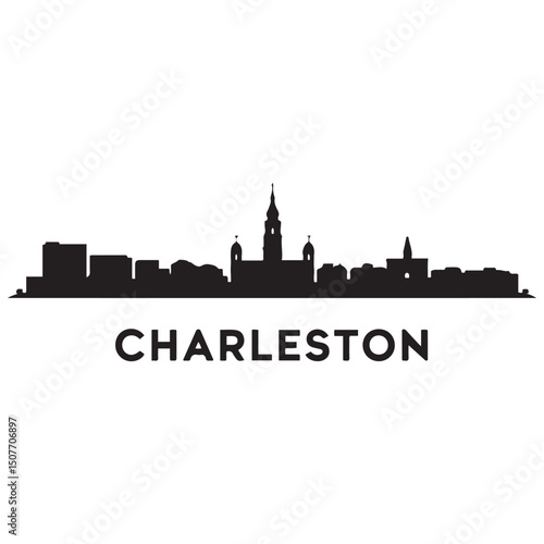 Obraz premium Charleston skyline horizontal banner. Black Charleston City, South Carolina. Vector template for your design. Vector black silhouette. with white background