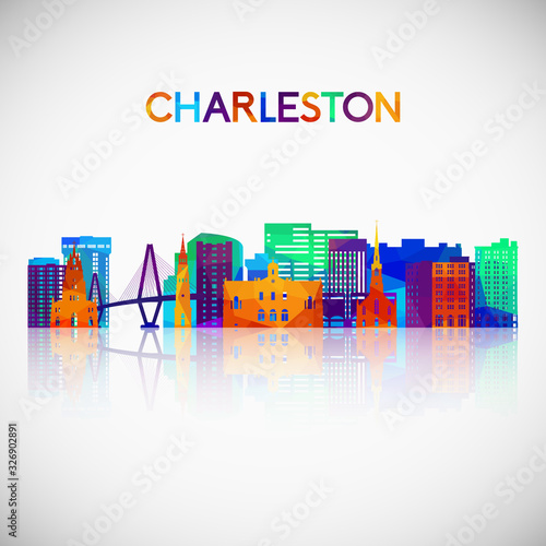 © greens87, Obraz premium Charleston skyline silhouette in colorful geometric style. Symbol for your design. Vector illustration.