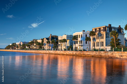 Obraz premium Charleston South Carolina row of old historic federal style houses on Battery...