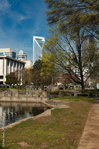 © clsdesign, Obraz premium Charlotte, North Carolina skyline cityscape on a spring day with copy space