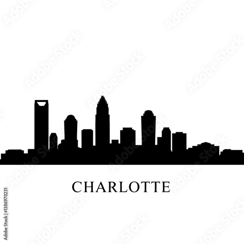 © godsfavoritearts, Obraz premium Charlotte Skyline Silhouette - Vector Illustration