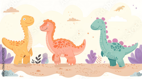 Naklejka premium charming and colorful illustration of dinosaurs for children