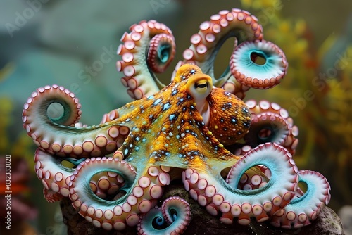 © Ratchadaporn, Obraz premium Charming and Colorful Octopus with Vibrant Tentacles in the Underwater Realm