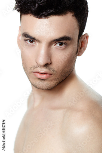 © cmirnovalexander, Obraz premium Charming and handsome man face over a white background