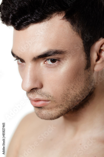 Obraz premium Charming and handsome man face over a white background