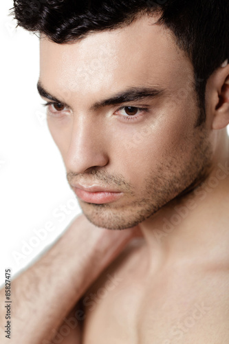 © cmirnovalexander, Obraz premium Charming and handsome man face over a white background