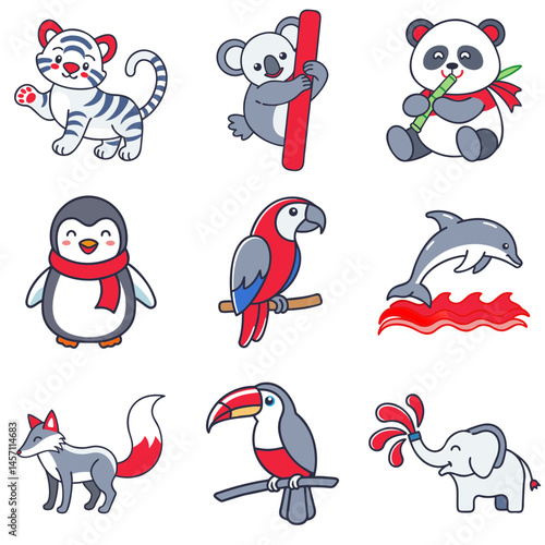 Obraz premium Charming animal icons featuring diverse wildlife in playful style